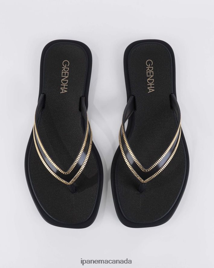 Grendha's Caju Thong is a next-level flip flop! With a microheel, you stand proud; with the gold edging to the Black straps, there's a feel of true class. The squared-off toe just completes the look of lux.