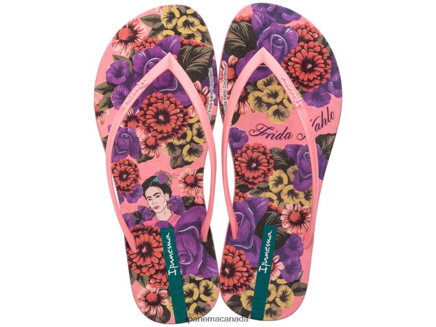 In the Frida Kahlo thong, Frida appears in full colour on the left, with her name decorating the right. The blooms surrounding her give way to some straps which are more delicate than usual, and have the Ipanema logo to the front. Salmon Pink just feels so good for this design!